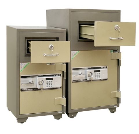 Két Sắt SOLID KSHB-900 (130kg) Két Tiền Thu Ngân Bán Hàng là dòng két có khay ở trên được thiết kế như một cái rãnh đựng tiền. Khi kéo hộc ra thì két sẽ trông như bình thường, nhưng khi đóng hộc lại thì phần đáy sẽ bị hạ xuống, đồng thời toàn bộ vật dụng ở hộc trên sẽ được chuyển xuống phần két phía dưới. Chất liệu thép không rỉ và hỗn hợp chống cháy với độ bền cao, chịu nhiệt tốt chống cháy hiệu quả với nhiệt độ 1050ºC khiến bạn an tâm khi sử dụng. Cùng tìm hiểu thêm về mẫu két sắt Hàn Quốc Solid đang được ưa chuộng này nhé!