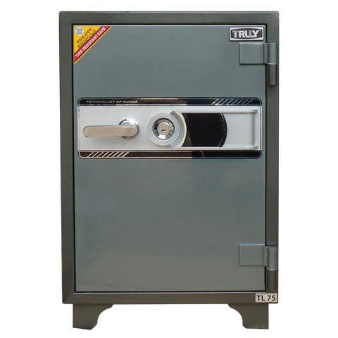 Két sắt TRULY TL-75 với khóa điện tử có thể bao gồm tận 15 số, nếu nhập sai 3 lần két sắt sẽ tự động khóa, còn khóa cơ (khóa xoay) với độ bền lâu hơn, có thể cài đặt tận 3 số với cách mở xoay đặc biệt, chống dò số. Két sắt TRULY đã được sử dụng rất rộng rãi trong thị trường ngày nay khi có những tính năng bảo mật cao nhưng giá thành lại rất phù hợp cho mọi gia đình.